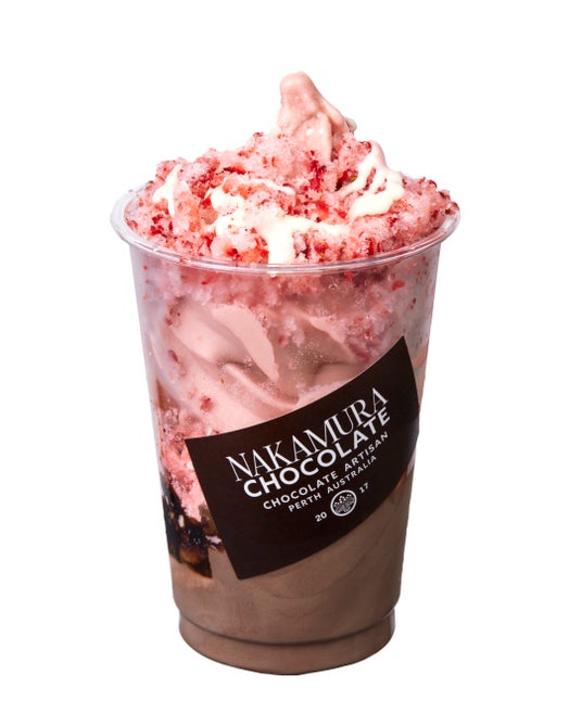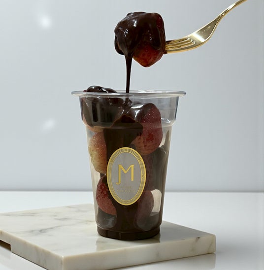 香り高いチョコレートソースと甘酸っぱい苺のマリアージュ。