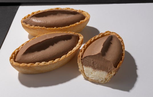 カスタードと生クリームの人気のクリームにカカオの濃厚で風味豊かなクリームをのせました。タルトの食感とのコントラストも楽しめます。