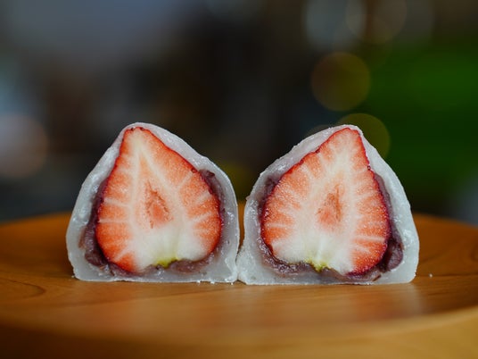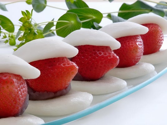 芋菓子「いも恋」で知られる、川越の「菓匠 右門」。人気の季節限定「いちご大福」は、埼玉県産の完熟いちごを地元農家から仕入れ、大粒で新鮮ないちごを使用しています。滋賀県産羽二重餅米を使用した餅生地で、なめらかな自家製こしあんとともにやさしく挟んだ、自家製フルーツ大福です。