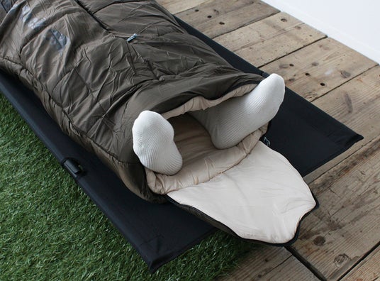 従来の寝袋より足回りを広めに確保。足を自由に動かせて窮屈さを感じにくい設計にしています。