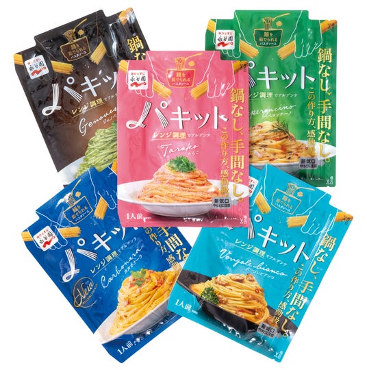 衝撃プライス!〈永谷園〉パキット各種 よりどり5個(ボンゴレビアンコ76g、ペペロンチーノ65g、カルボナーラ80g、ジェノベーゼ65g、たらこ65g)1,080円