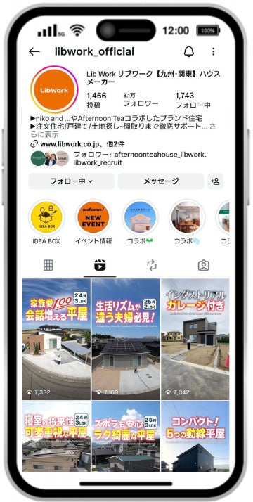 「Lib Work ch」ではルームツアー動画を主に配信するほか、「3Dプリンター住宅の開発秘話」や「各メーカーのキッチン等比較動画」など、当社独自のコンテンツも積極的に発信を行っております。20分間のルームツアー動画では約200万回、1分間のショート動画では約300万回の再生回数を超えた動画もあり、1コンテンツに対し平均約9万回の再生回数を維持しております。