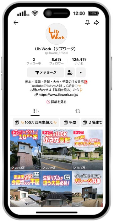 当社は「暮らしを変える、世界を変える、未来をつくる」というスローガンのもと、魅力ある動画チャンネルづくりに取り組んでおります。2020年1月にお客様の住まいを社員自ら紹介するYouTubeチャンネル「Lib Work ch」を開設し、2024年8月に登録者数10万人を突破。このたび2025年12月、登録者数15万人に到達いたしました。