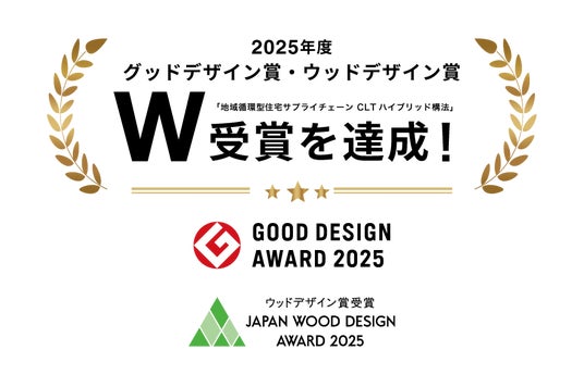 「地域循環型住宅サプライチェーン CLTハイブリッド構法」プロジェクトにおいて、「2025年度グッドデザイン賞」(運営:公益財団法人日本デザイン振興会)と「ウッドデザイン賞2025」(主催:一般社団法人日本ウッドデザイン協会)を受賞いたしました。