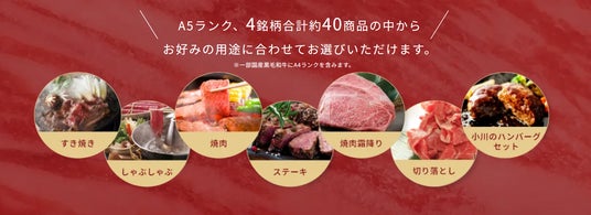 - 贈る側も受け取る側も幸せになる「選択の自由」「すき焼きが好きか、ステーキが好きか分からない…」。そんなギフトの悩みを解決するために、松阪牛・前沢牛・常陸牛・国産黒毛和牛の4銘柄、計約40通りの組み合わせを用意しました。現代のライフスタイルに合わせたスマートな贈り物文化を提案します。