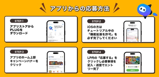 ※既に『PLUG』をインストール済みの方は、ステップ3・4の完了で応募可能です
