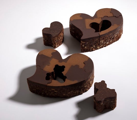 マカダミアナッツやカシューナッツをふんだんに使い、食感ゆたかに仕上げたハートブラウニー。ハート型のパズルのなかにモチーフをあしらい、箱を開けるわくわく感もお届け。モチーフはハートや星、クマなど全部で24種類ご用意しました。