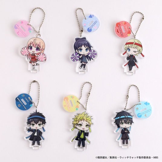 TVアニメ『ウィッチウォッチ』のニコやモリヒトたちが応援団とチアリーダー衣装を着た描き起こしミニキャラを使用したアイテムです。