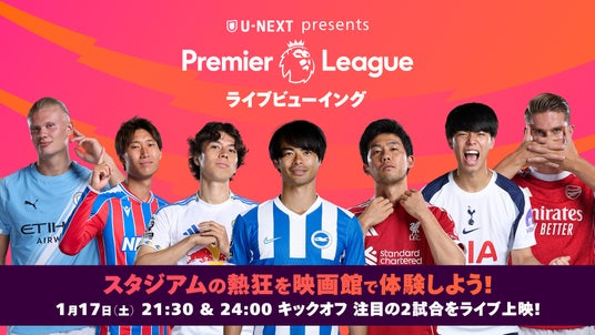 USEN&U-NEXT GROUPの株式会社U-NEXT(本社:東京都品川区、代表取締役社長:堤 天心)が運営する動画配信サービス「U-NEXT」は、2026年1月17日(土)に、サッカー・プレミアリーグのライブビューイングイベントを実施いたします。今回は世界最高峰のダービーマッチであるマンチェスター・U vs マンチェスター・Cの「マンチェスターダービー」を含む注目2試合を、TOHOシネマズとイオンシネマの計6会場でライブ配信いたします。