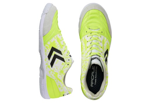 APICALE 5 ELITE PG(アピカーレ5エリート PG)は、フットサル日本代表清水和也選手とのコラボモデル。「従来のモデルよりもクッション性を上げたい」という清水選手のリクエストを受け、アウトソールの厚みはほぼ変えずに、中底に低反発ウレタン素材SLIM FLEXを追加したアイテム。