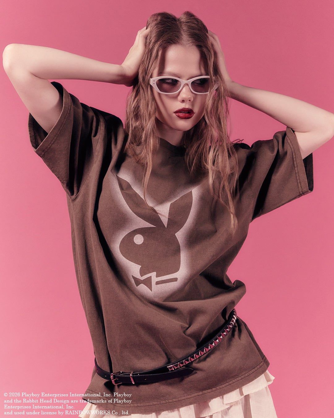 今回のコレクションでは、世界で最も知られているブランドロゴの1つであるラビットヘッドを、異素材と加工感にこだわりながら、PINKを基調にY2Kのムードを表現したデザインで提案。Wネームならではの存在感あるグラフィックを落とし込んだTシャツ2型とスウェット1型、ニット1型の計4アイテムを展開し、コラボレーションの魅力を存分に感じられるラインナップとなっています。