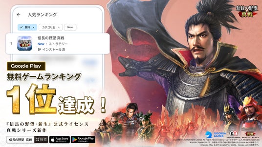 『信長の野望 真戦』は、App Store 無料ゲームランキングで1位を獲得したのに続き、Google Play 無料ゲームランキングでも1位を獲得いたしました。改めて、全てのプレイヤーの皆様に心より感謝申し上げます。達成を記念し、小判111枚を配布いたします。