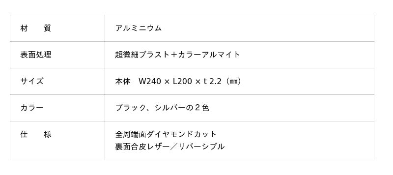 サンショウの主要事業である自動車用品の製造技術を活かし、アルミ製の板にカラーアルマイト加工を施し、図柄をレーザーで切削加工しました。