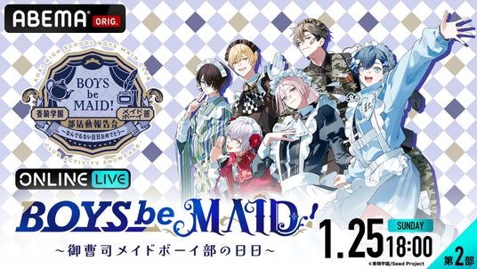 新しい未来のテレビ「ABEMA」は、“メイドボーイ×御曹司”が織りなす、新感覚キャラクターコンテンツ「BOYS be MAID!」の初リアルイベント「『 BOYS be MAID!』香騎学園メイドボーイ部 部活動報告会~なんでもない日日おめでとう~」第1部・第2部を、「ABEMA PPV(アベマ ペイパービュー)」にて2026年1月25日(日)に独占生放送いたします。