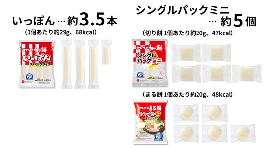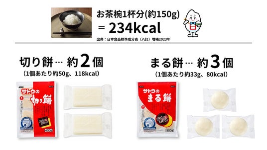 「おもちは何個食べるとちょうど良いのか?」。白飯1杯分(約150g)を目安におもちのエネルギー量をご紹介いたします。ぜひ他のお食事と合わせて参考にしてみてください。