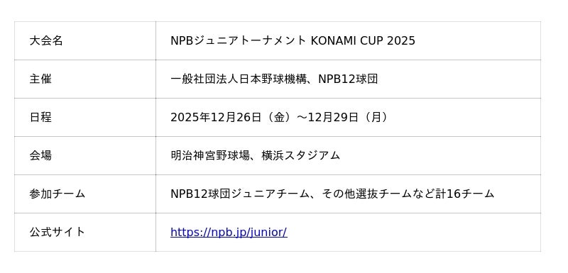 ●「NPBジュニアトーナメント KONAMI CUP 2025」大会概要