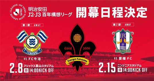 この度、明治安田J2・J3百年構想リーグ地域リーグラウンドにおけるツエーゲン金沢の1節・2節の試合開催日、キックオフ時刻、スタジアムが下記の通り決定いたしました。