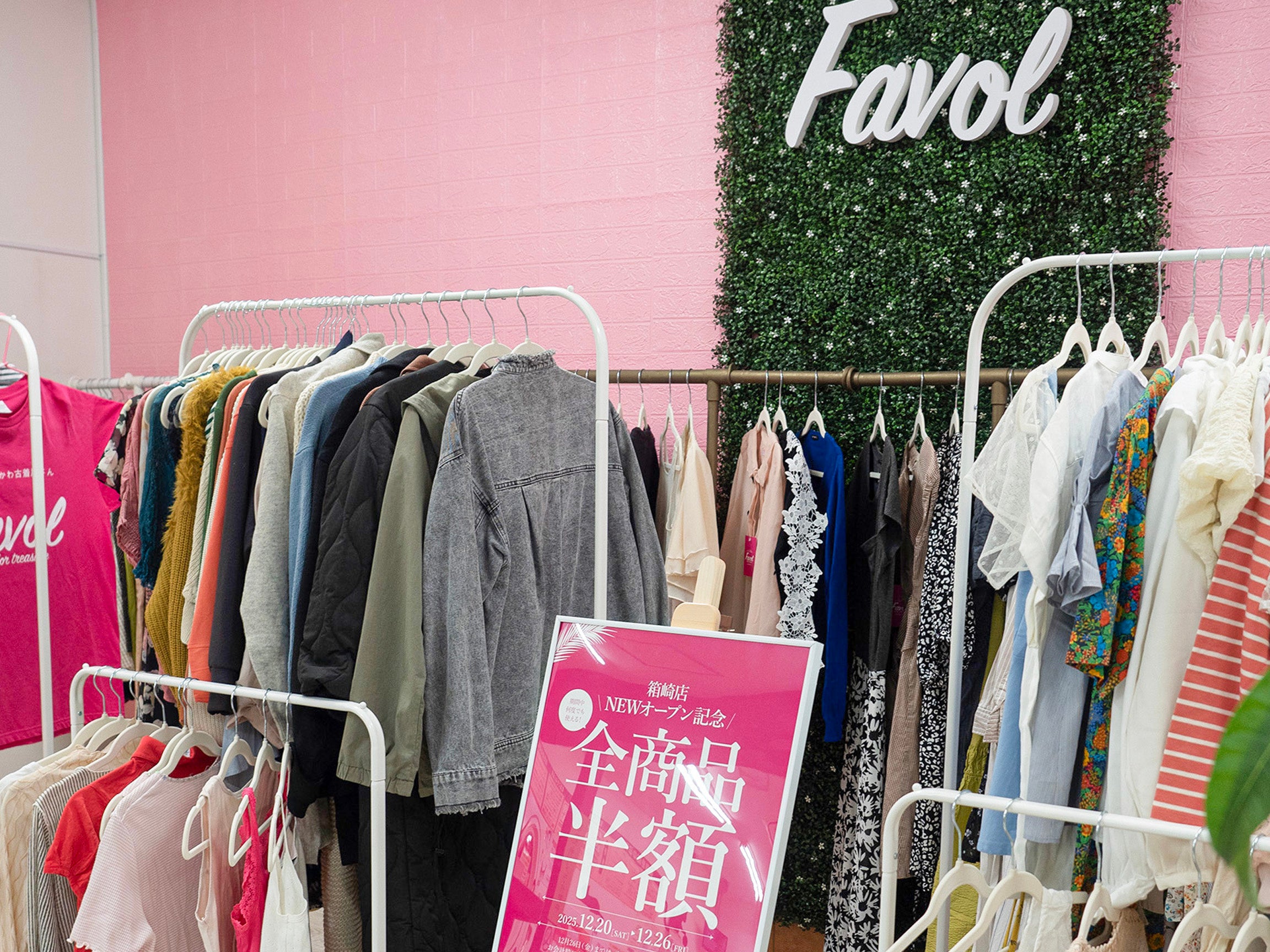 2025年9月のオープンより好評を博してきたレディース専門の古着屋Favolが、箱崎にも登場。近年の物価高によりファッションにお金を出しづらいなか、もっとオシャレをリーズナブルに、気兼ねなく好きなものを着たい、という女性の要望に応える古着屋がより充実した暮らしをサポートします。
