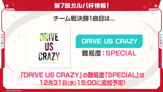 第7回ガルパ杯の、チーム戦決勝の1曲目が『DRIVE US CRAZY』の難易度「SPECIAL」に決定いたしました。