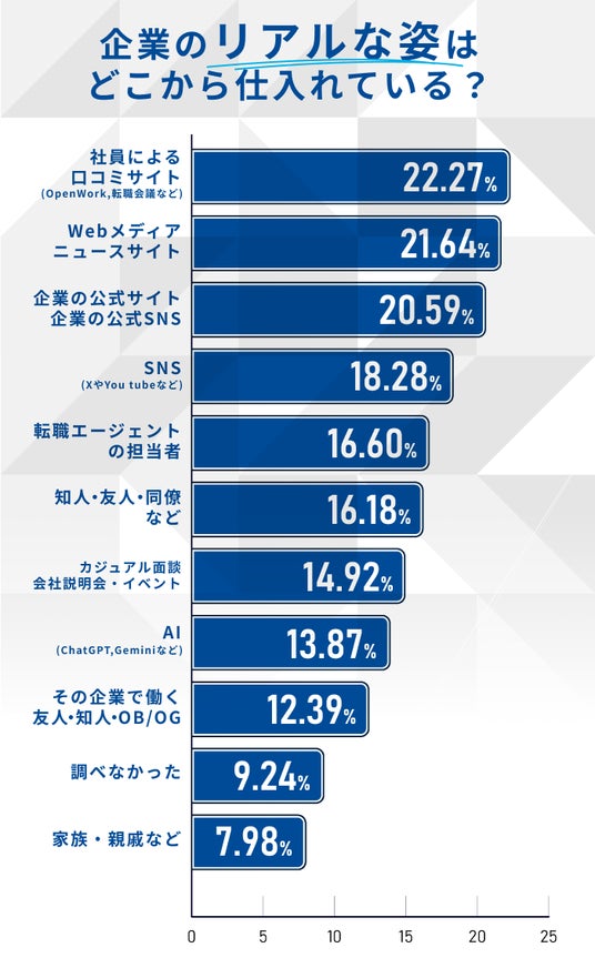 公式情報だけでなく、実際に働いている人の声や第三者からの評価などを組み合わせて、多角的に会社を見ようとしている20代が多い印象です。