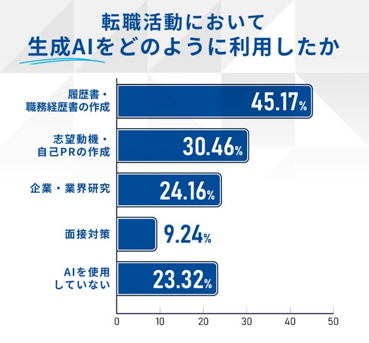 ここ数年で急速に普及した生成AI(ChatGPT、Geminiなど)を、転職活動でどのように使ったのかも聞いています。