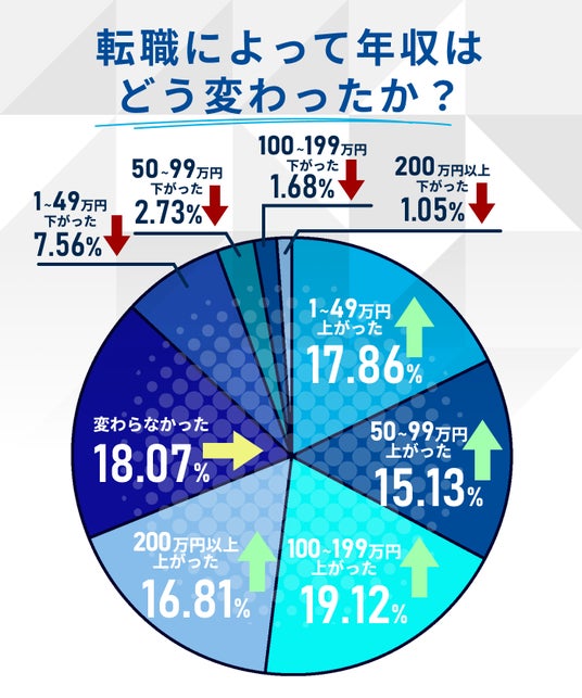 「年収が上がった」と回答した人は全体の約7割を占めており、20代でも条件交渉やキャリアチェンジを通じて、大きな年収アップを実現している人が多いことが分かります。