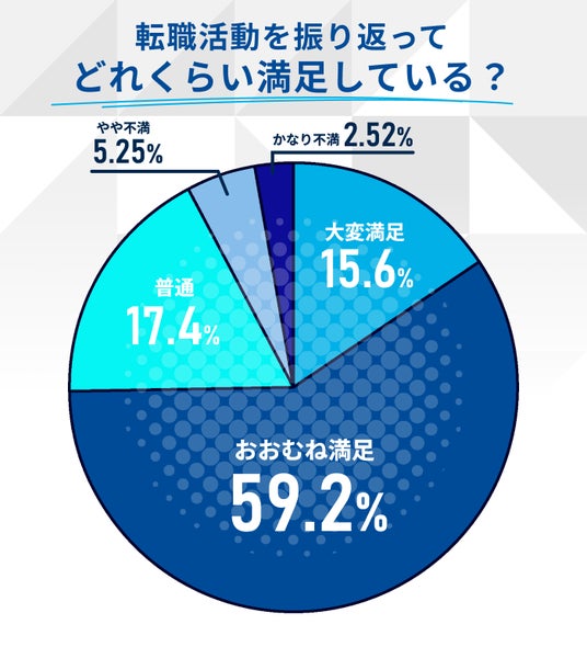 最後に、転職活動全体の満足度を5段階で聞いた結果を見てみましょう。