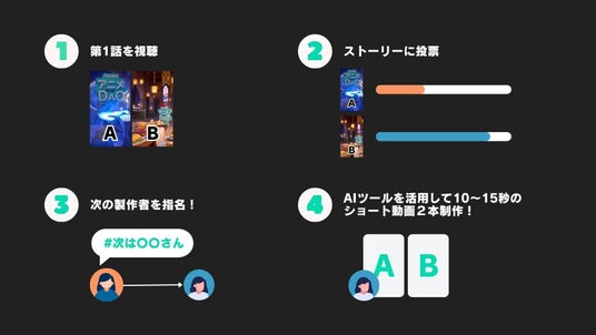 - 制作を終えた参加者が次の制作者を指名し、リレー形式でストーリーを繋ぐ