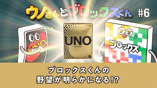 世界大手の玩具メーカー、米国マテル社の日本法人マテル・インターナショナル株式会社(本社:東京都中央区、代表取締役社長:石井 恵三)は、1月11日の「ウノの日」に向けて、55年目を迎えたカードゲーム「ウノ」と、戦略性の高さが魅力のボードゲーム「ブロックス」が登場するキャラクターシリーズ「ウノさんとブロックスくん」の第3弾企画として、新作ムービー3本を2025年12月26日(金)より公開いたします。