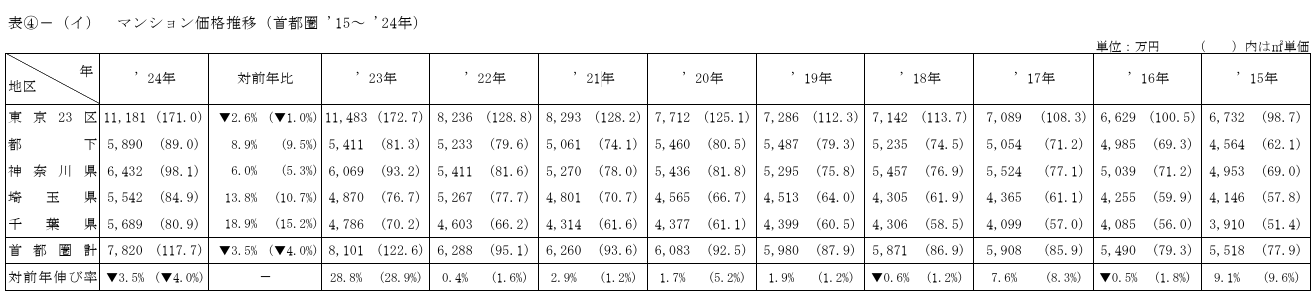 ▼参照:全国 新築分譲マンション市場動向 2024年