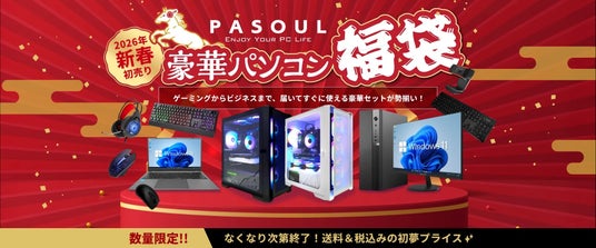 高品質なBTOパソコン・ゲーミングPCを製造・販売するPASOUL(パソウル)は、2026年の幕開けを祝し、「2026年初売り 豪華パソコン福袋をPASOUL公式オンラインショップにて販売いたします。