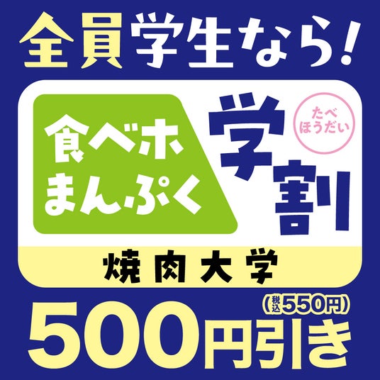 食べホ学割スタート!全コース500円(税込550円)引きに!グループ全員学生さんなら、全コースお得に!