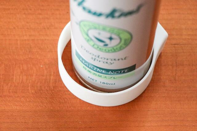 どのように使うかというと、まずはシリコーンバンドを伸ばして、スプレーボトルに装着。