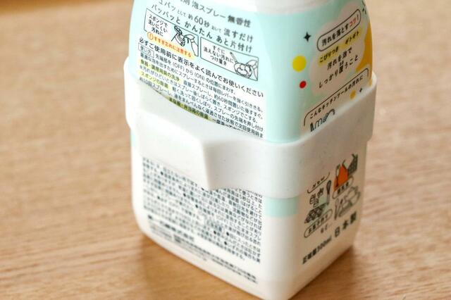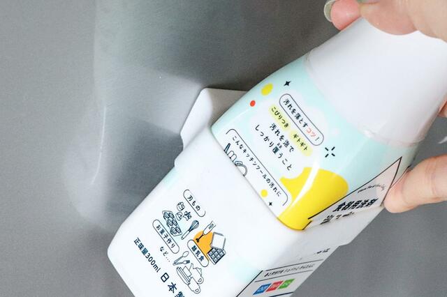 たとえば以前買って気に入っている、スプレータイプの洗剤につけてみました。