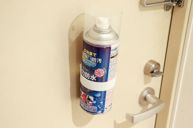 虫除けスプレーや防水スプレーなどを玄関ドアにセットしておけば、サッと使えてとっても便利になりますよ。
