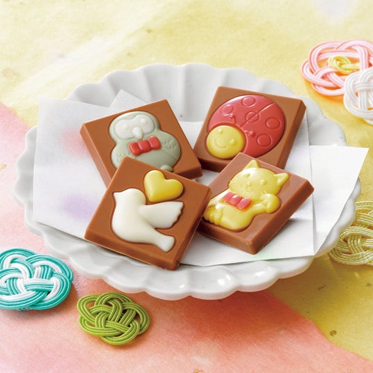 幸運の象徴とされる4つの生き物やアイテムをモチーフにしたひと口サイズのチョコレート。