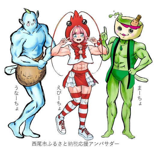 西尾市ふるさと納税をPRするために生まれたキャラクター「うなーちょ」「えびーちょ」「まーちょ」
