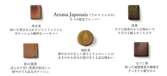 このたび、2026年1月15日(木)より、職人の技とこだわりが息づく“Chocolat Artisan(ショコラ アルチザン*)”と題したフェアを開催します。今回ご紹介する今季限定の新コレクションは「Aroma Japonais(アロマ ジャポネ)」がテーマ。日本で育まれた5種類の茶葉と出合うことで生まれた新たな味わいは、手仕事だからこそ実現できるフレッシュな風味と繊細な口溶け、そして重なり合う和の香り。ショコラティエが選び抜いた素材に向き合い、受け継いだ職人技を大切にしながら生み出された新たなフレーバーをお楽しみください。