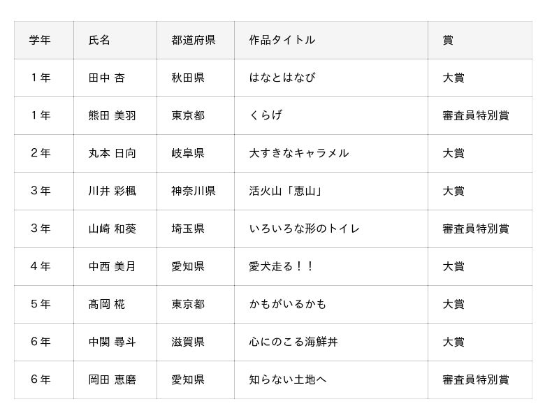 全国の小学生9,665件の応募作品から大賞26作品 審査員特別賞20作品を表彰