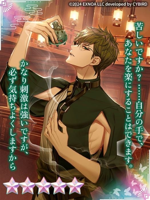DMM GAMESを運営する合同会社EXNOA(本社:東京都港区、CEO:東條 寛、URL:https://games.dmm.com/)は、Romanteen18シリーズの第1弾・オトナの女性向け恋愛ゲーム「夢幻楼と眠れぬ蝶」にて、狛谷獅子雄(CV:オベリスク=絽綺)本編の配信を開始いたしました。また、新たなゲーム内イベントとガチャの開催と、本編配信を記念したキャンペーンの実施もお知らせいたします。