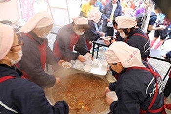 コース上とフィニッシュ地点で、名物「しし汁」のふるまいを実施。