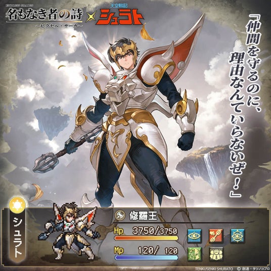 Lightcore Games Limitedは、運営する放置系ドット絵RPG『名もなき者の詩』において、TVアニメ『天空戦記シュラト』とのコラボイベントを、正式に開始したことをお知らせいたします。本コラボレーションは、放送から長きにわたり愛され続ける『天空戦記シュラト』の史上初のスマートフォン向けゲームコラボレーションとなり、株式会社創通、株式会社タツノコプロの正式監修のもと実施されます。