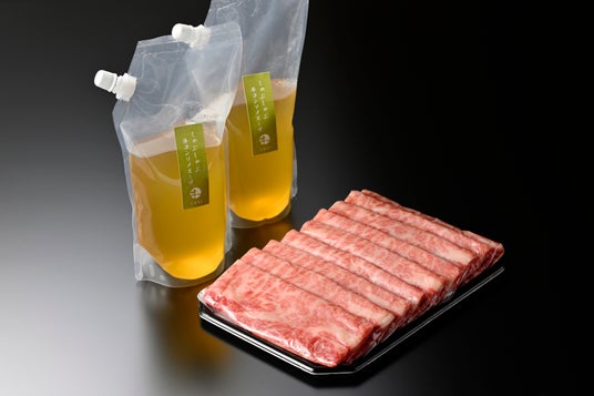 凝縮された肉の旨みを楽しむ、黒毛和牛のすき焼き用肩ロースと特製割り下のセット