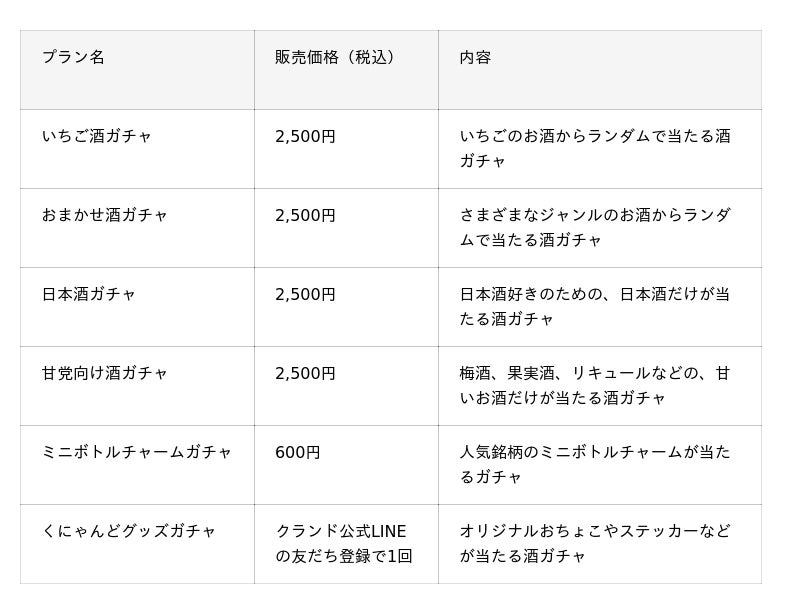 「酒ガチャ」とは、「なにが当たるかわからない。だからこそ楽しめる、新たなお酒との出会い。」をコンセプトに、日本酒・梅酒・果実酒・リキュール・焼酎・ワイン・プレミアムサワーベースなど、500種類を超えるお酒の中から、ランダムにお酒をお届けするクランドの人気サービスです。2019年に誕生し、コロナ禍の家飲み需要をきっかけにSNSを中心に話題となりました。