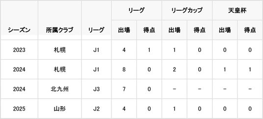 小倉南FC Jrユース - 東福岡高校 - 順天堂大 - 北海道コンサドーレ札幌 - ギラヴァンツ北九州 - モンテディオ山形