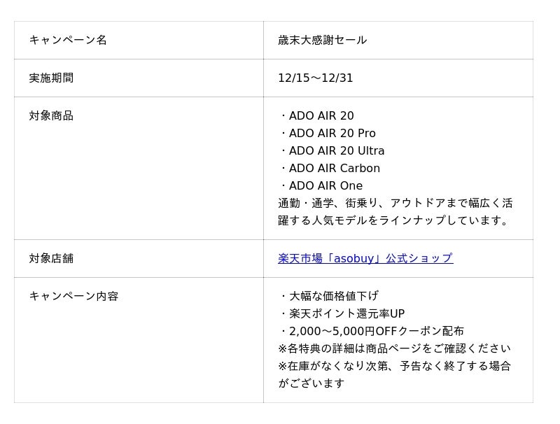 [楽天市場 asobuy店]:ADO AIR 20/ADO AIR 20 Pro/ADO AIR 20 Ultra/ADO AIR Carbon/ADO AIR One が年末限定価格に