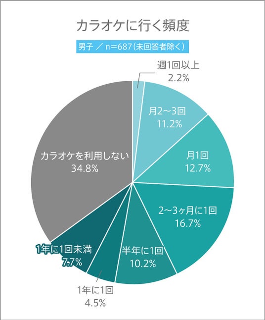 女子で最も多かったのは、“2~3ヶ月に1回”。一方男子は、“カラオケを利用しない”が最も多い結果となりました。