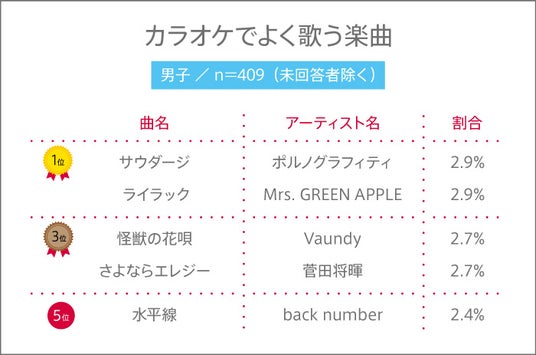 次に「カラオケでよく歌う楽曲」については下記の通りです。