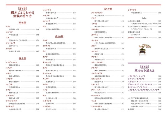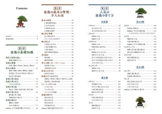 第1章では、盆栽の鑑賞ポイントや園芸と盆栽の違いなど、基礎知識から解説します