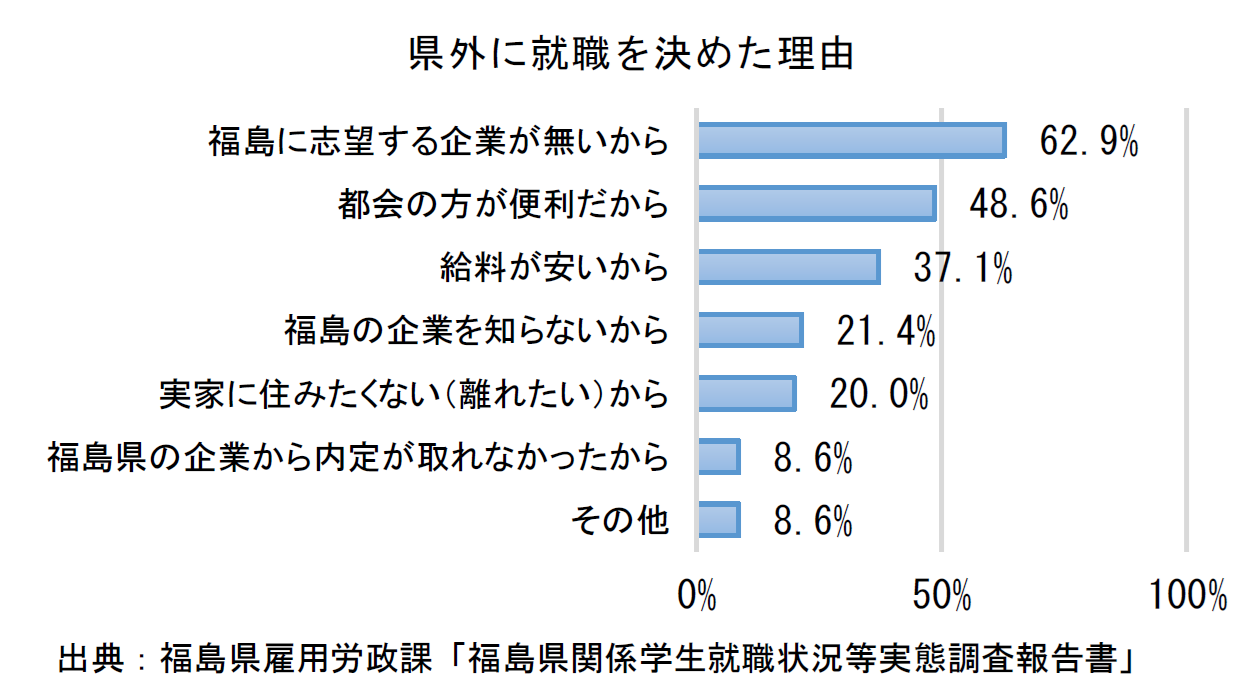 地元企業は知られていない?「福島の企業を知らない」ことを理由に県外就職する学生が一定数います。一方で地元企業を知る機会がない若年層も多く、情報発信の必要性があります。